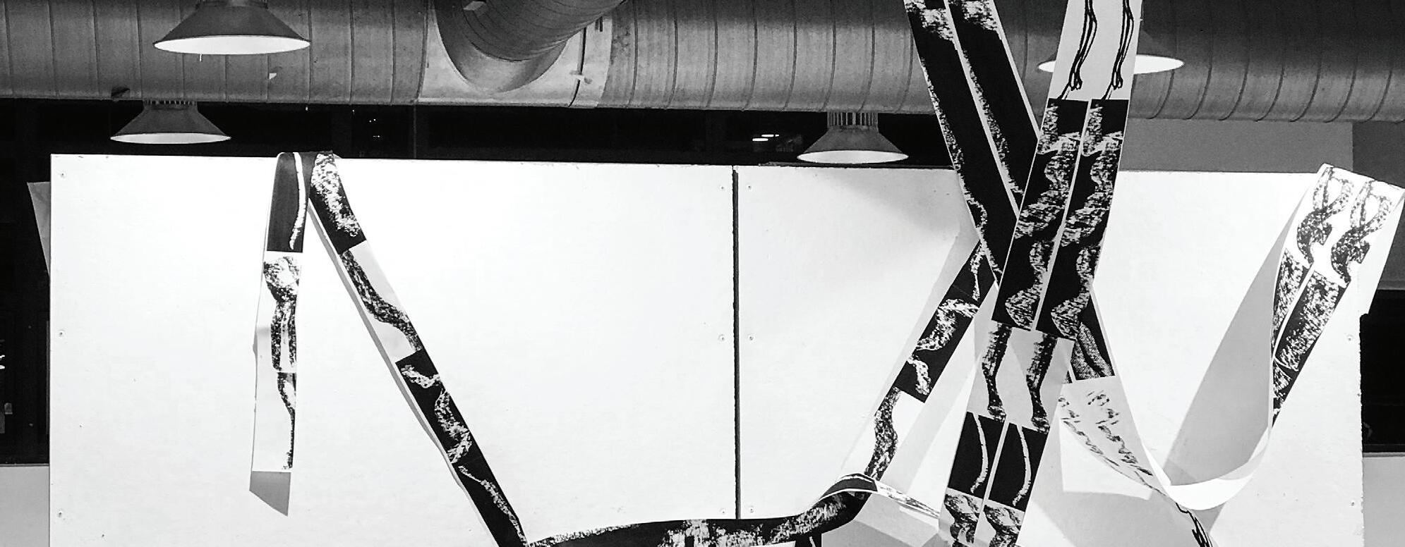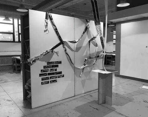 In response to an assigned task of creating a form derived from a given sound, I have developed a model that reflects an analysis of the sound’s characteristics. The developed model visually represents the interplay between silence and noise by using white and black elements to symbolize them. Furthermore, it captures the dynamic relationship between silence and noise, where moments of interruption and intersection reflect the essentiality of both elements in creating a coherent composition, much like the song. When observed closely, the rivalry between noise and silence becomes apparent, but from a distance, there is a sense of harmony between the two characters in the installation.