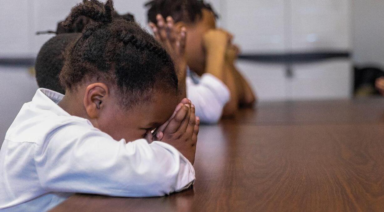 Terrence Fleming, Principal Grant Park Christian AcademyPrincipal Terrence Fleming prays with other Grant Park staff before the school day begins.