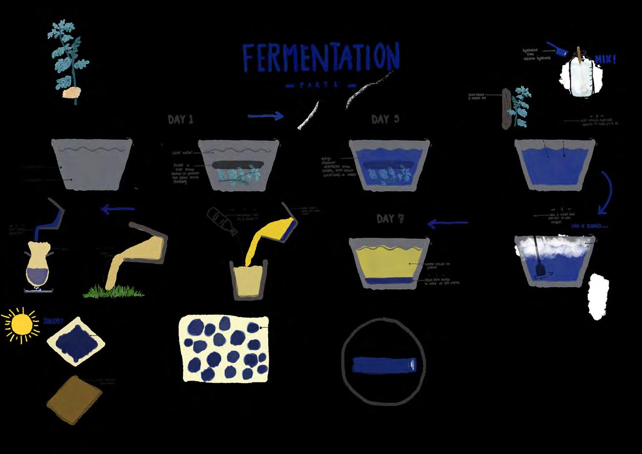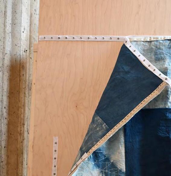 Using natural indigo pigments, we created 16 panels of 12”x12”, with traditional japanese dyeing techniques, testing variations in colour with different amounts of dye and dip time.