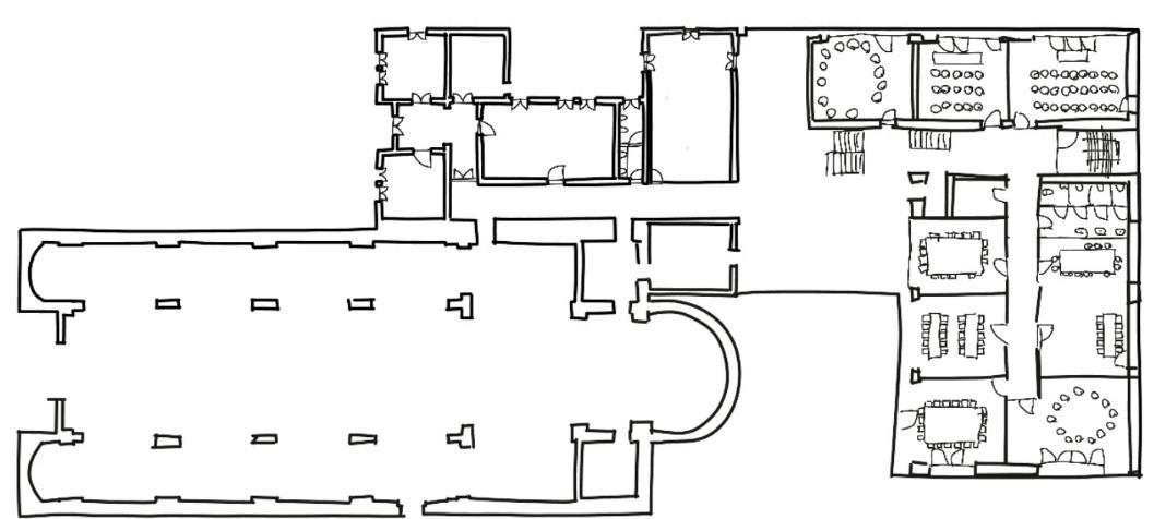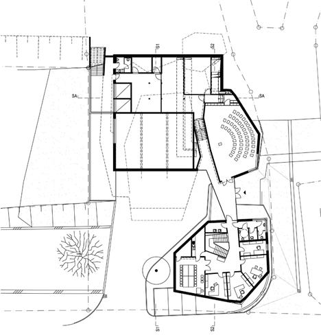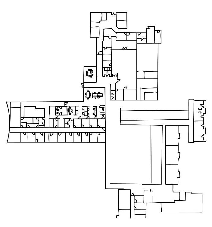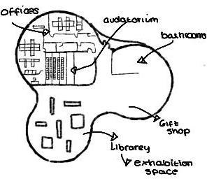 The floor plan above indicated the special distribution of the building as it creates a unique building as its jagged like but cannot be noticed when within. furthermore, it allows people to continuously travel thought the building from start to end as it has a neverending feel to it .