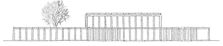 The building mostly uses concrete and timber wood as well as the double-glazed glass which allows pedestrians to see directly through in and out of the building .It also consists of a courtyard where a tree is located on the floor plan which allows nature into the building. At night, the community center acts as a lantern for the village as it’s the center of socialization.