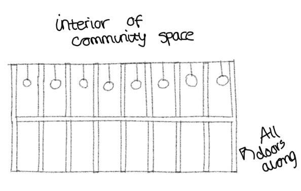 Above shows the floor plan of the structure and the main lay out of the community center itself. Its not a perfectly straight structure as it goes in and out along , this makes it unique compared to the research ideas as it incorporates the same idea but makes it a lot more different as it represents itself more differently