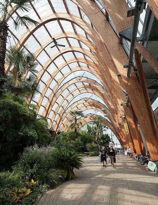 .The plants provide a natural source of ventilation for people as well as having natural daylight access the structure through many windows which proves transparency thought the structure allowing people to see in and out .