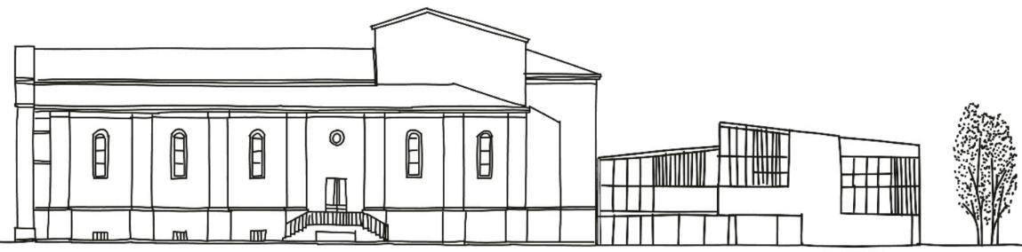 The design is a complete rethinking of the buildings surrounding the Regina Pacis Church involving the adaptation of the existing parish rectory, the re-arrangement of the external areas and the construction of a new community center, intended to house a multi-purpose hall, rooms for teaching Catechism and service areas for parish activities generally.