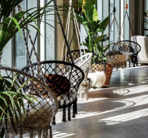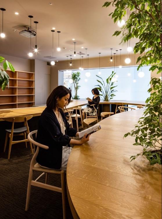 The structure itself incorporates the organic and natural aspect as timber woods are used as a material for the interior structure as well as plant which bring the environment indoors and creates a more positive space . The colors gain are neural which can stimulate better mental health