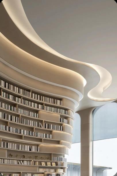 The community center has so many unique aspect s from the water fountains at the front for kids to enjoy the amazing library which would make anyone want to read and learn. The library is very much unique as it has circular skylights which allows access of natural lighting to the light-coloured pastel furniture that are located throught the library make it a peaceful place .