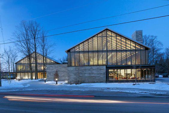 Nestled on a remnant forest in the historic village of Brooklin, Ontario, this 41,000 square foot, two story district Library and Community Centre includes a library, a gymnasium and a community wing with youth and senior centers, each housed under one of the three linked structures whose rooflines and simple forms evoke a barn-like aesthetic. With a budget of approximately $15 million, it was designed by Perkins + Will.