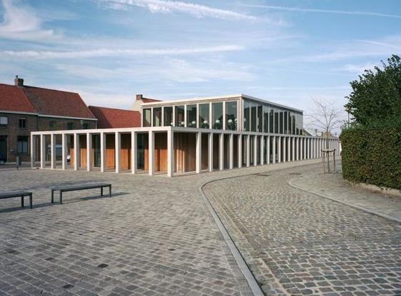 The renovation of the village center and the construction of a community center. The redesign of the public space included three squares, who's simple but high-quality design corresponds with the sober character of the village. The community center is located on the ‘Stations Plein’, a square measuring 150 x 40 meters flanked by two-story brick. There are many glass windows that have been used when constructed the building , this therefor allows a lot more natural lighting to enter the structure being more sufficient and sustainable and uses less electricity