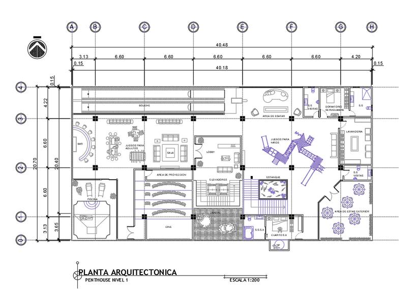 Proyecto en el cual se realizo un edificio el cual contaba con distintos niveles iniciando de un centro comercial hasta un penthause 2D y 3D.