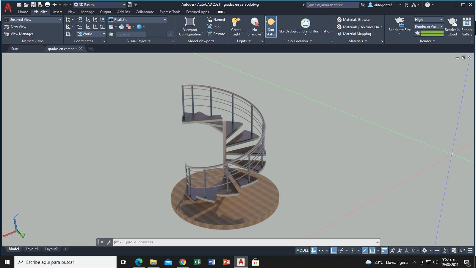 Creación de distintos modelos de escaleras entre ellas una escalera en caracol la cual es un render completo, fueron parte esencial para la creacion de una casa 3D.