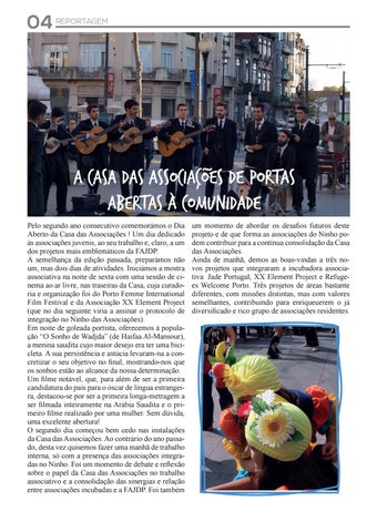 A Casa das Associações ~ de Portas Abertas à comunidade Pelo segundo ano consecutivo comemorámos o Dia Aberto da Casa das Associações ! Um dia dedicado às associações juvenis, ao seu trabalho e, claro, a um dos projetos mais emblemáticos da FAJDP. À semelhança da edição passada, preparámos não um, mas dois dias de atividades. Iniciámos a mostra associativa na noite de sexta com uma sessão de cinema ao ar livre, nas traseiras da Casa, cuja curadoria e organização foi do Porto Femme International Film Festival e da Associação XX Element Project (que no dia seguinte viria a assinar o protocolo de integração no Ninho das Associações). Em noite de goleada portista, oferecemos à população “O Sonho de Wadjda” (de Haifaa Al-Mansour), a menina saudita cujo maior desejo era ter uma bicicleta. A sua persistência e astúcia levaram-na a concretizar o seu objetivo no final, mostrando-nos que os sonhos estão ao alcance da nossa determinação. Um filme notável, que, para além de ser a primeira candidatura do país para o óscar de língua estrangeira, destacou-se por ser a primeira longa-metragem a ser filmada inteiramente na Arábia Saudita e o primeiro filme realizado por uma mulher. Sem dúvida, uma excelente abertura! O segundo dia começou bem cedo nas instalações da Casa das Associações. Ao contrário do ano passado, desta vez quisemos fazer uma manhã de trabalho interna, só com a presença das associações integradas no Ninho. Foi um momento de debate e reflexão sobre o papel da Casa das Associações no trabalho associativo e a consolidação das sinergias e relação entre associações incubadas e a FAJDP. Foi também