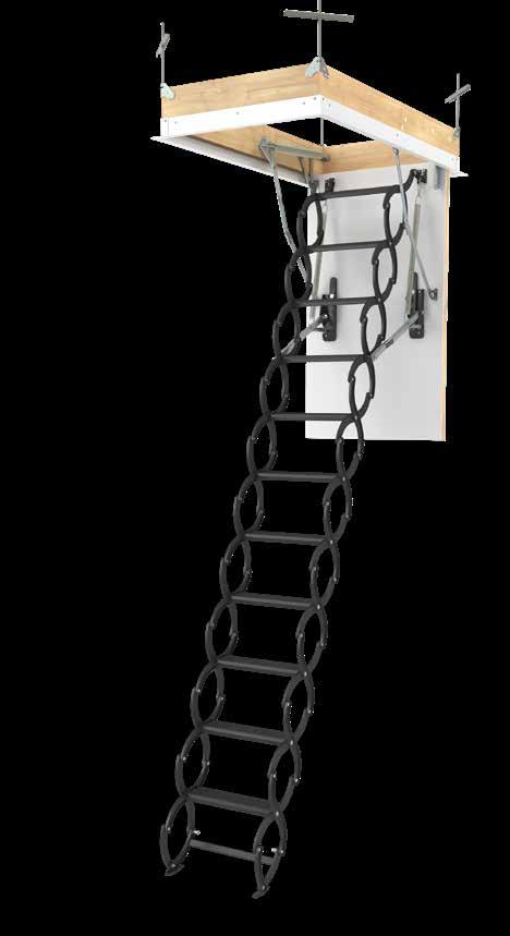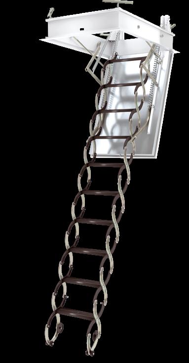 The unloading mechanism is hidden in the handrail, supporting the folding and unfolding of the ladder (applies to models with 11'10 '' ceiling height).