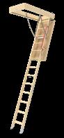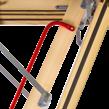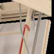 The LWP model is a basic, insulated attic ladder built from pine wood. It provides easy access to attics without the hassle of using a big step ladder. Each unit is equipped with a handrail, a weather gasket seal to reduce heat loss, and a system to adjust the ladder length after cutting.
