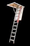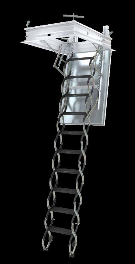 The LSF model is a fire-rated, scissor style attic ladder made up of all metal parts. Ladder's hatch is equipped with a gasket that expands under extreme heat. The LSF ladder is fire-rated at EI260 minutes as per EN13501-2. system of adjusting the ladder length to the ceiling height can add or detach steps