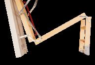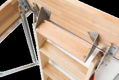 Stahovací konstrukce umožňuje složit žebřík na malé rozměry, díky čemuž lze schody namontovat do malých půdních otvorů (nejmenší rozměr je 50x80 cm).