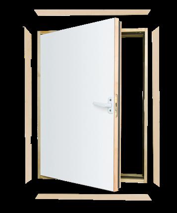 White, double-sided fire-resistant door sash 6.6 cm thick, equipped with a self-expanding seal.