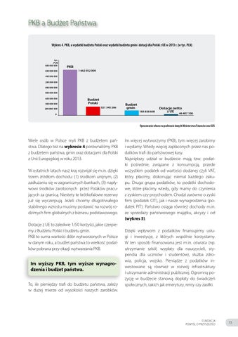 PKB a Budżet Państwa Wykres 4. PKB, a wydatki budżetu Polski oraz wydatki budżetu gmin i dotacji dla Polski z UE w 2013 r. (w tys. PLN)