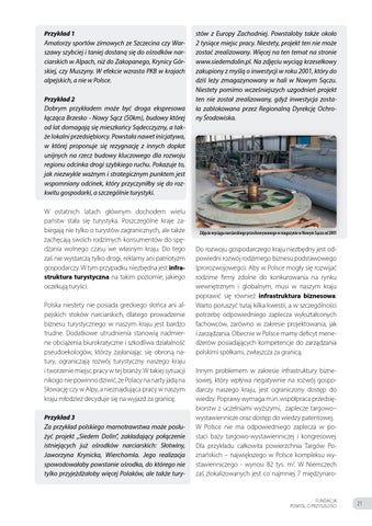 Przykład 1 Amatorzy sportów zimowych ze Szczecina czy Warszawy szybciej i taniej dostaną się do ośrodków narciarskich w Alpach, niż do Zakopanego, Krynicy Górskiej, czy Muszyny. W efekcie wzrasta PKB w krajach alpejskich, a nie w Polsce. Przykład 2 Dobrym przykładem może być droga ekspresowa łącząca Brzesko - Nowy Sącz (50km), budowy której od lat domagają się mieszkańcy Sądecczyzny, a także lokalni przedsiębiorcy. Powstała nawet inicjatywa, w której proponuje się rezygnację z innych dopłat unijnych na rzecz budowy kluczowego dla rozwoju regionu odcinka drogi szybkiego ruchu. Pokazuje to, jak niezwykle ważnym i strategicznym punktem jest wspomniany odcinek, który przyczyniłby się do rozkwitu gospodarki, a szczególnie turystyki. W ostatnich latach głównym dochodem wielu państw stała się turystyka. Poszczególne kraje zabiegają nie tylko o turystów zagranicznych, ale także zachęcają swoich rodzimych konsumentów do spędzania wolnego czasu we własnym kraju. Do tego zaś nie wystarczą tylko drogi, reklamy ani patriotyzm gospodarczy. W tym przypadku niezbędna jest infrastruktura turystyczna na takim poziomie, jakiego oczekują turyści. Polska niestety nie posiada greckiego słońca ani alpejskich stoków narciarskich, dlatego prowadzenie biznesu turystycznego w naszym kraju jest bardzo trudne. Dodatkowe utrudnienia stanowią nadmierne obciążenia biurokratyczne i szkodliwa działalność pseudoekologów, którzy zasłaniając się obroną natury, ograniczają rozwój turystyczny naszego kraju i tworzenie miejsc pracy w tej branży. W takiej sytuacji nikogo nie powinno dziwić, że Polacy na narty jadą na Słowację czy w Alpy, a nieznajdująca pracy w naszym kraju młodzież decyduje się na wyjazd za granicę. Przykład 3 Za przykład polskiego marnotrawstwa może posłużyć projekt „Siedem Dolin”, zakładający połączenie istniejących już ośrodków narciarskich: Słotwiny, Jaworzyna Krynicka, Wierchomla. Jego realizacja spowodowałaby powstanie ośrodka, do którego nie tylko przyjeżdżałoby więcej Polaków, ale także tury-