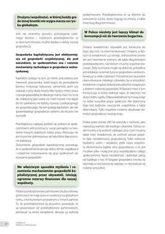 W Polsce niestety jest lepszy klimat do konsumpcji niż do tworzenia bogactwa. Zmiana świadomości obywateli jest konieczna do tego, aby móc na równi konkurować z krajami, w których ta świadomość już istnieje. Jednocześnie proces ten jest niezmiernie ważnym, ale także długotrwałym przedsięwzięciem, nad którym musimy wspólnie pracować. Żeby ta zmiana mogła się dokonać, potrzebna jest edukacja na temat życia w gospodarce wolnorynkowej już w wieku szkolnym. Potrzebne jest racjonalne ukierunkowanie młodego człowieka, by w przyszłości świadomie i mądrze dokonywał wyborów związanych z dobrem rodzimej gospodarki. W Bawarii mówi o tym Konstytucja, w której widnieje zapis, że własność ma służyć dobru ogółu. Odpowiedzialność tę muszą wziąć na siebie wszystkie grupy społeczne. Nie dokonamy tego bez rodziców, nauczycieli, urzędników, a także dziennikarzy. Tylko wspólnie możemy zbudować dobrobyt gospodarczy naszego kraju. Polska przez ponad 200 lat walczyła o wolność, jako najwyższą wartość dla każdego człowieka. Dzisiaj nadal musimy o tę wolność zabiegać, przy czym musimy także mieć świadomość, że wolność zawsze poparta była niezależnością gospodarczą. Tylko wówczas będziemy wolni i niezależni, jeżeli nasza wspólnota ekonomiczna będzie silna gospodarczo, a to jest możliwe tylko i wyłącznie przy współdziałaniu całego społeczeństwa. Nasza niezależność i dobrobyt zależą od każdego z nas. W bogatej gospodarce tworzą się dochody, w niej tworzą się nadzieje i w niej realizuje się rodzina i przyszłość.