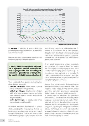 Na wykresie 12 pokazano, ile w danym kraju przypada firm prowadzących działalność, w przeliczeniu na 5 mln mieszkańców. Dlaczego w krajach, które posiadają dużą ilość rodzimych firm globalnych, zarabia się więcej?