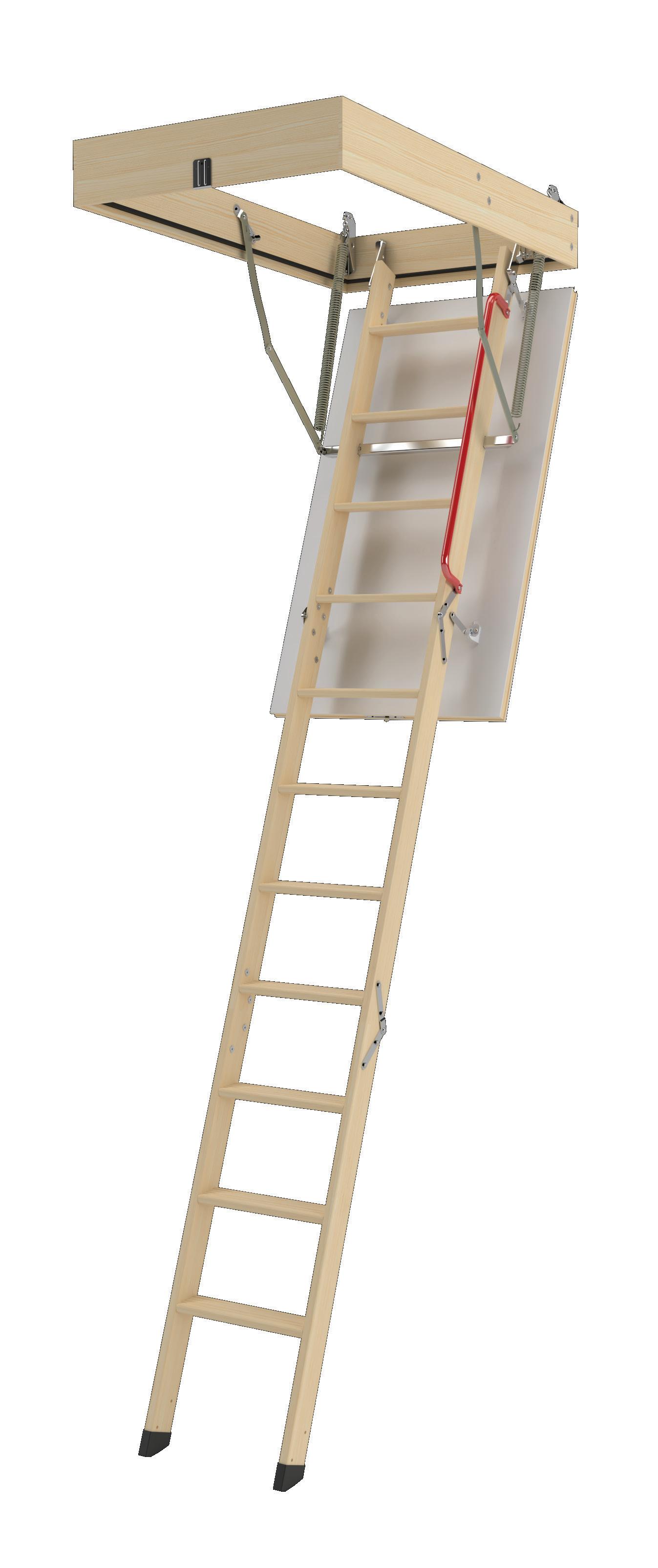 Denne er udført i træ og kan leveres som standard, thermo eller brandsikker. Lemmen er hvid på alle vore trapper og det rødlakerede gelænder, som er tilmed er standard hos FAKRO, sikrer en behagelig brug