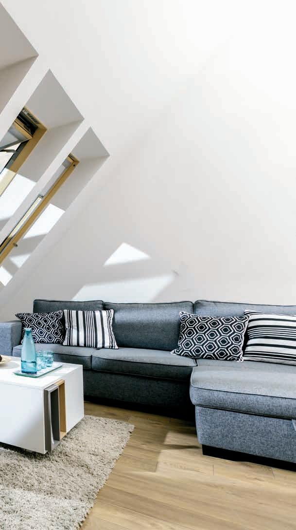 A FAKRO tetőtéri ablakokat úgy terveztük meg, hogy otthonosabbá tegyék a tetőtérben élők életterét. A bőséges mennyiségű természetes fény és a friss levegő pozitív hatással van az ember egészségére és közérzetére.