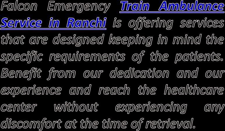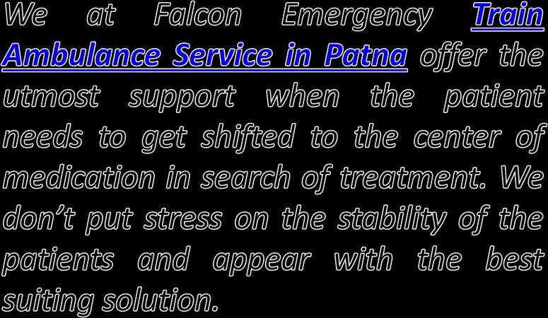 Use Falcon Emergency Train Ambulance in Patna and Ranchi with Cost-Efficiency Use Falcon Emergency Train Ambulance in Patna and Ranchi with Cost-Efficiency