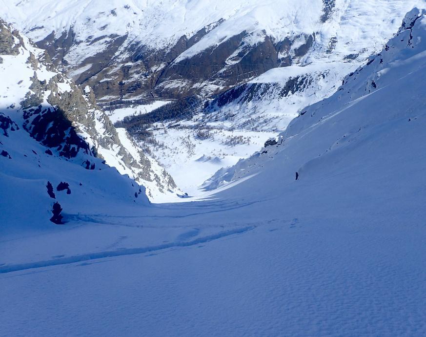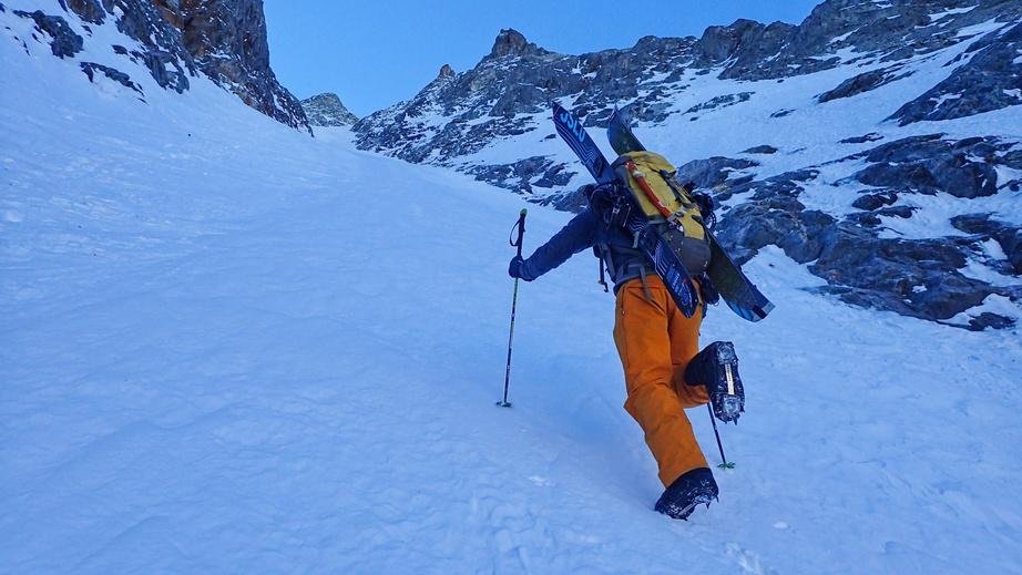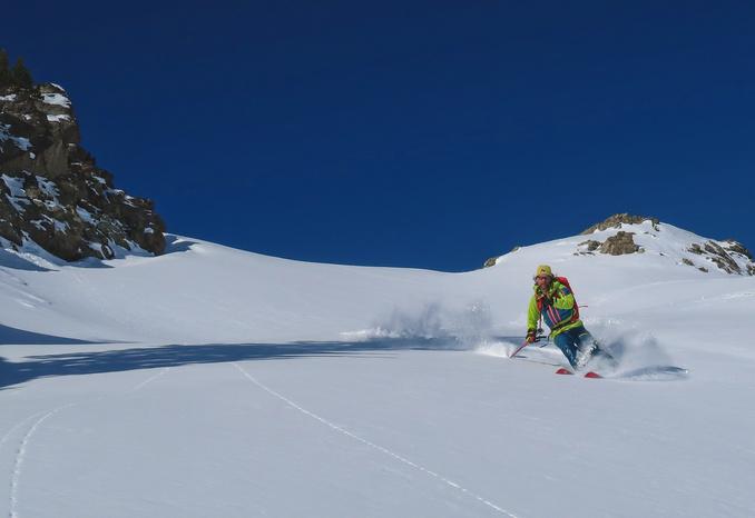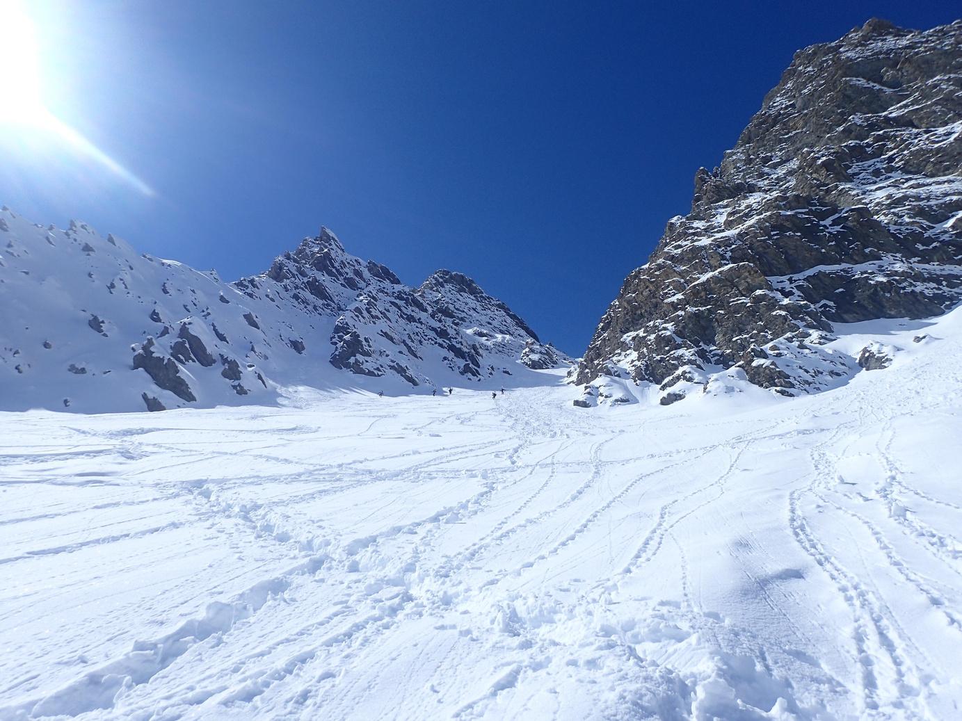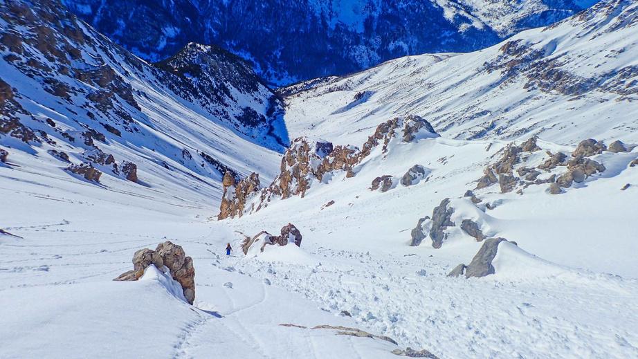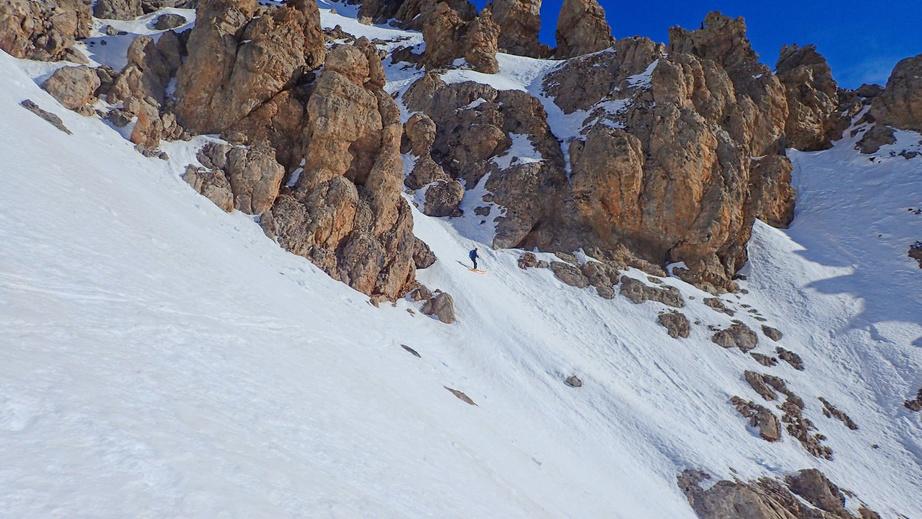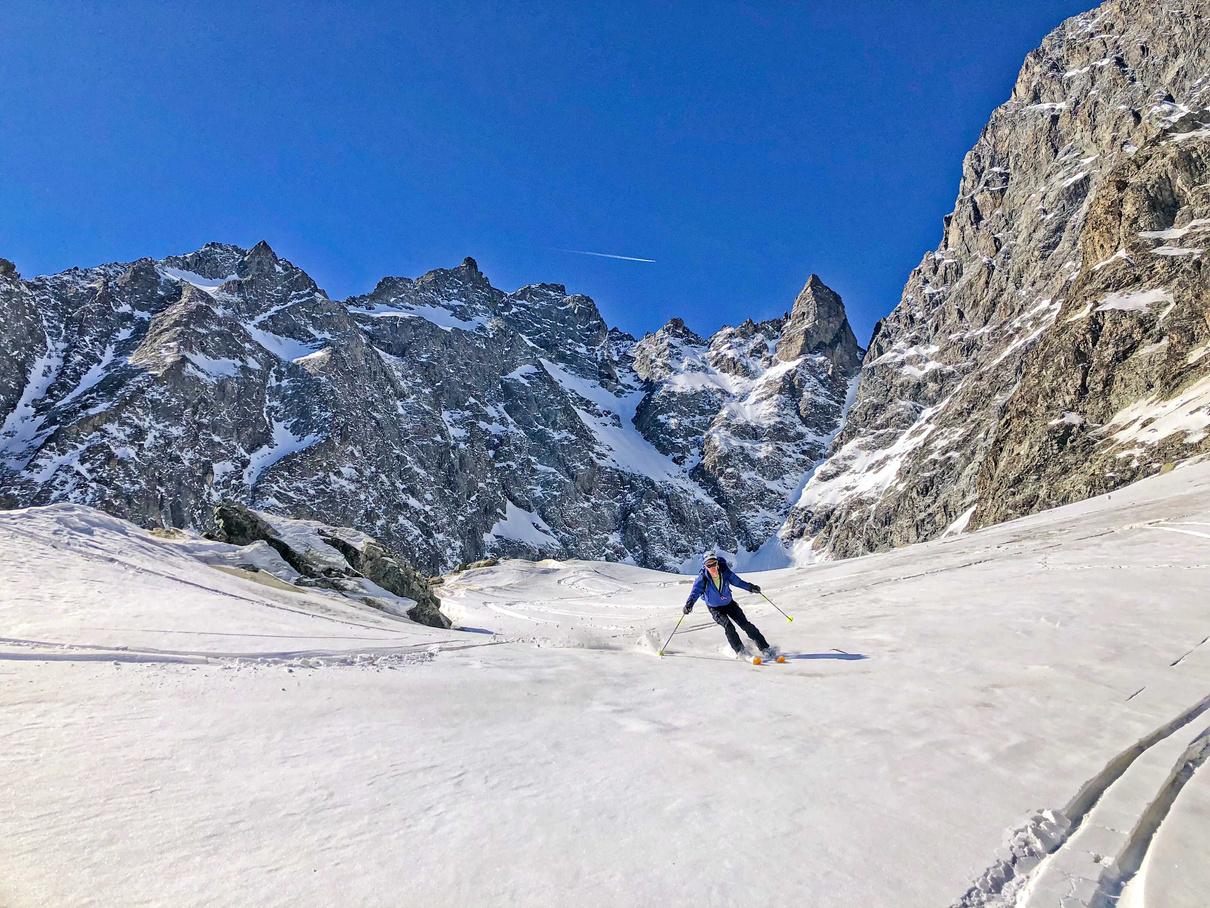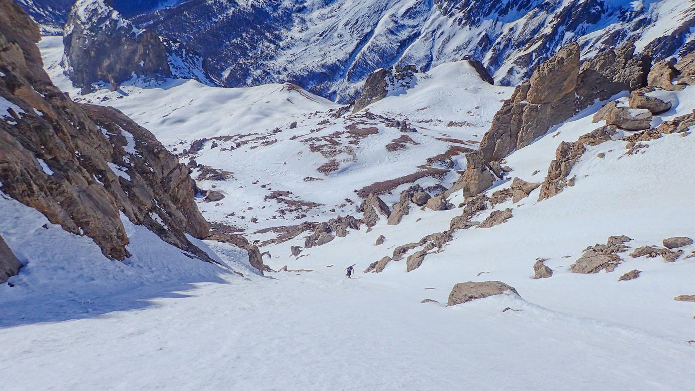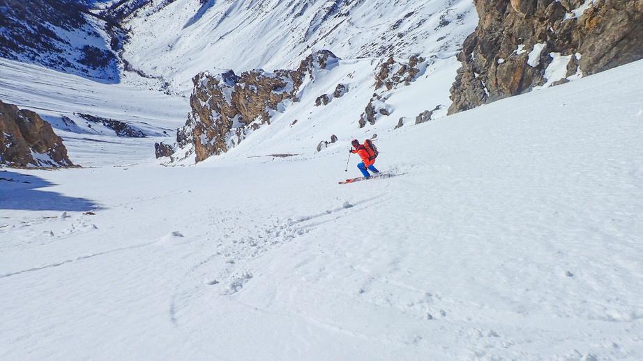 One of the better known couloirs in the Queyras, for good reason - quick and easy to access with stunning skiing.