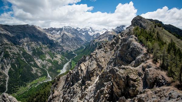 From the parking follow a series of paths and forest roads towards the Pra du Jas. From there follow the road and then the steep path towards the Cabane du Bancus
