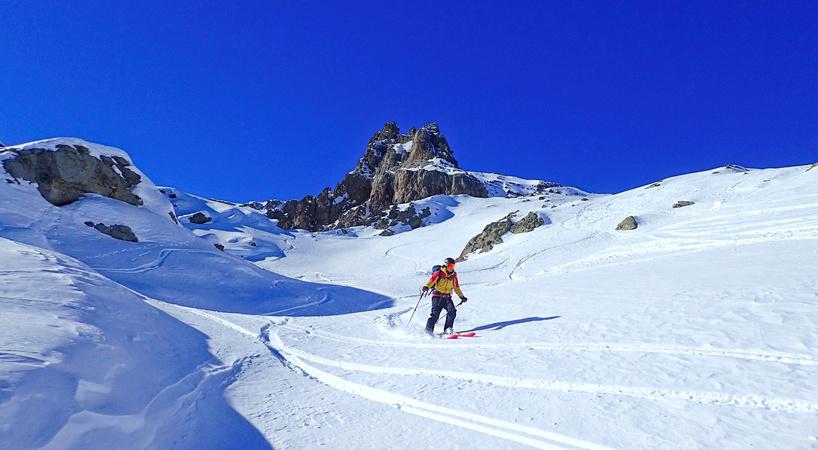 A beautiful ski up a stunning valley to one of the higher peaks in the Queyras with great views and a flowing ski back down.