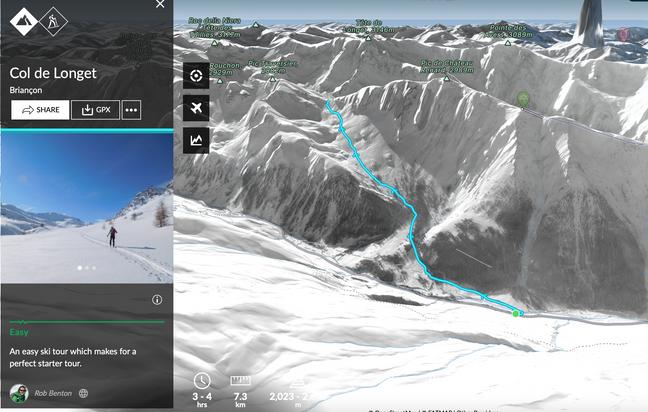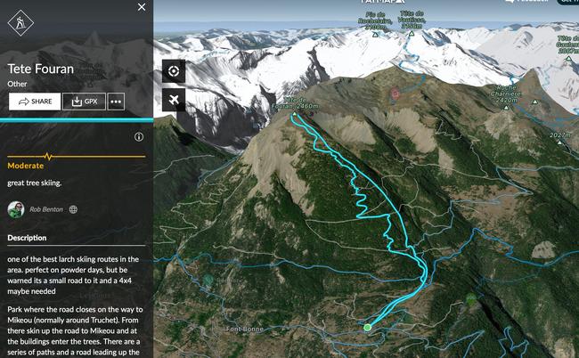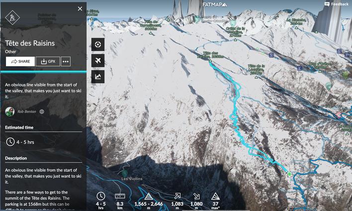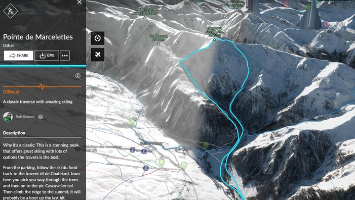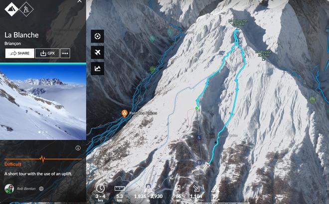 FATMAP offer great online mapping, including 3D - IPGN French maps and overlays for slope angle, aspect and lots of other features to help you plan your tour They also have routes that users and professionals have added to their data base.