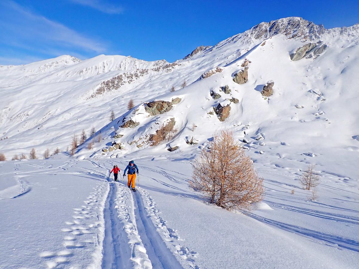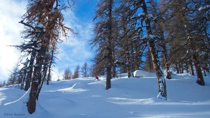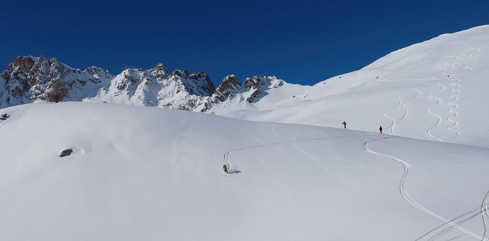 This is a long route and takes you up along the edge of the Val d'Escreins nature reserve. It gives great views and some very nice skiing.
