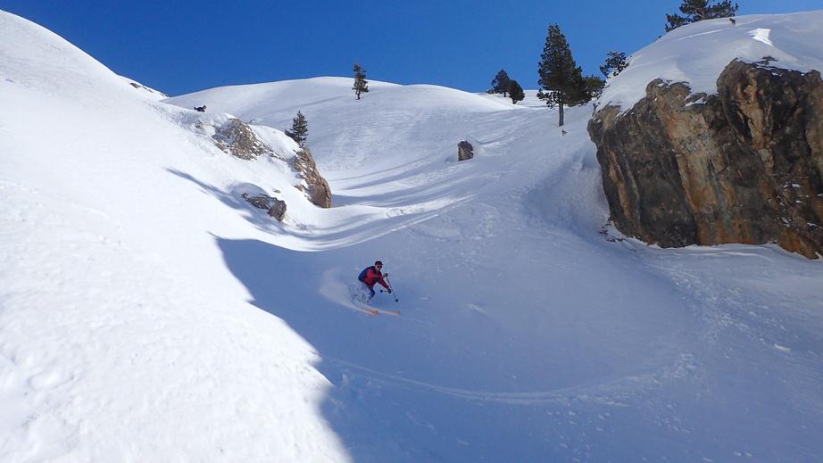 It has a little bit of everything: trees, open faces and there are a few gullies on the descent if you explore. A great intermediate trip.