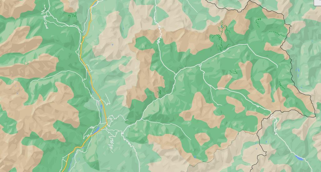 Arrive at the parking and continue on foot into the old village In the village go south to a small road on a bridge Cross it and follow the track west for a short distance, then turn south and start to climb up through the trees following the summer footpath (roughly). Keep an eye out for the open gaps and gullies in the trees as you will be skiing back down this way. Keep climbing until it starts to level off and the angle gets easier. Follow the stream until the trees start to thin out You will see a big rock sat in the middle of the valley floor; head to the left of it and then climb the west facing slopes behind it. From here head towards the Lac de Cristol Pass by the northern end of the lac and you will see a face open up that leads west up to the summit, spot height of 2576m From here return by the route of ascent.