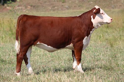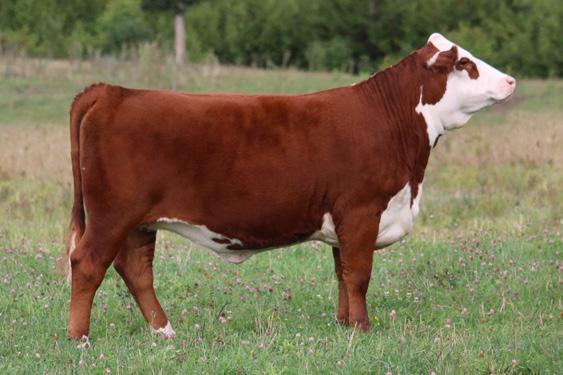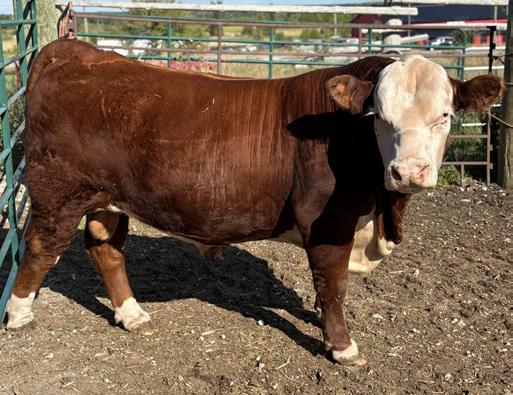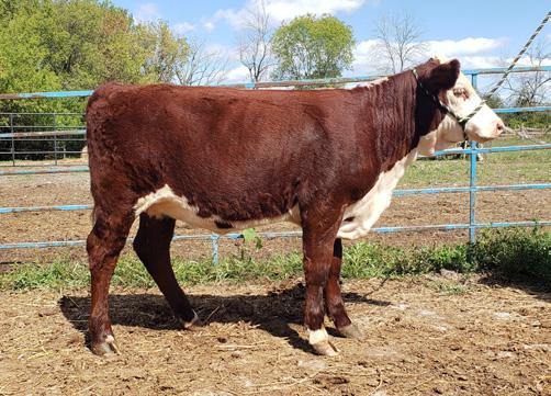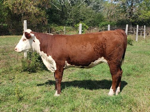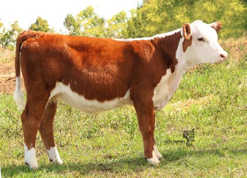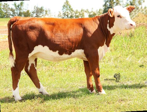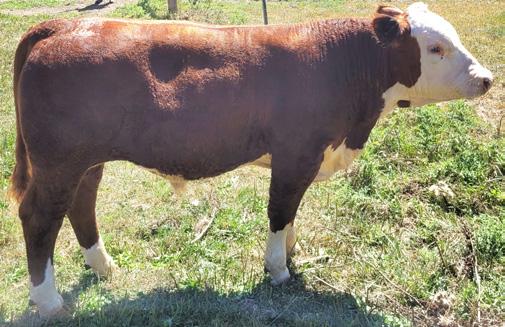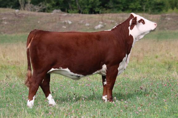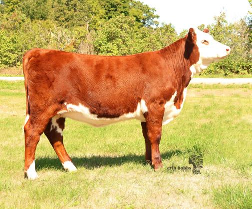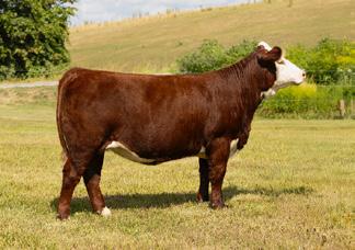 Myrrh is a moderate framed, feminine heifer from a tidy uddered, easy keeping cow. She was on the 2024 show string and is easy to work with. She was pastured exposed to Elm-Lodge Mountie 8M (co-owned with Roxwood Herefords) from May 16th to August 3rd. Was preg-checked safe in calf