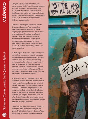 Coragem é para poucos. Ousadia é para menos pessoas ainda. Nos dicionários, coragem e ousadia aparecem como sinônimos. Mas, não entendo dessa forma. Ousadia tem um significado mais restrito que coragem. Envolve um teor de atrevimento, audácia. Popularmente, chama-se de ousado um comportamento libidinoso ou depravado.
