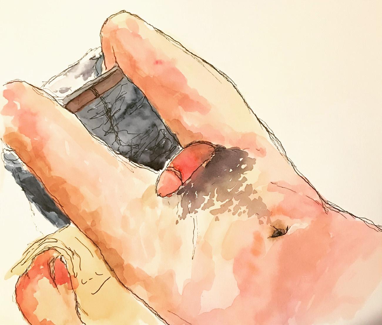 É lindo observar as constantes alterações de formas do pênis e do escroto, mole ou ereto. Gosto de retratar a sensação da iminência de algo.