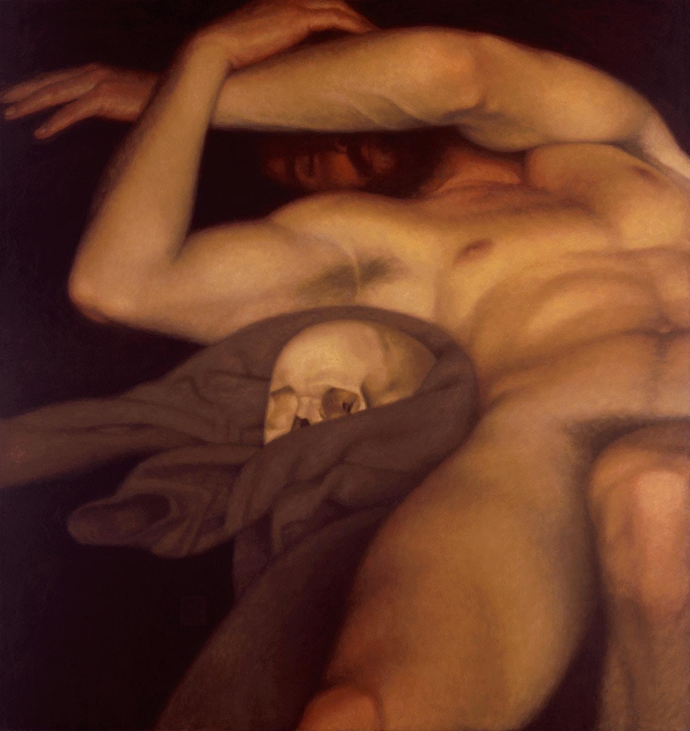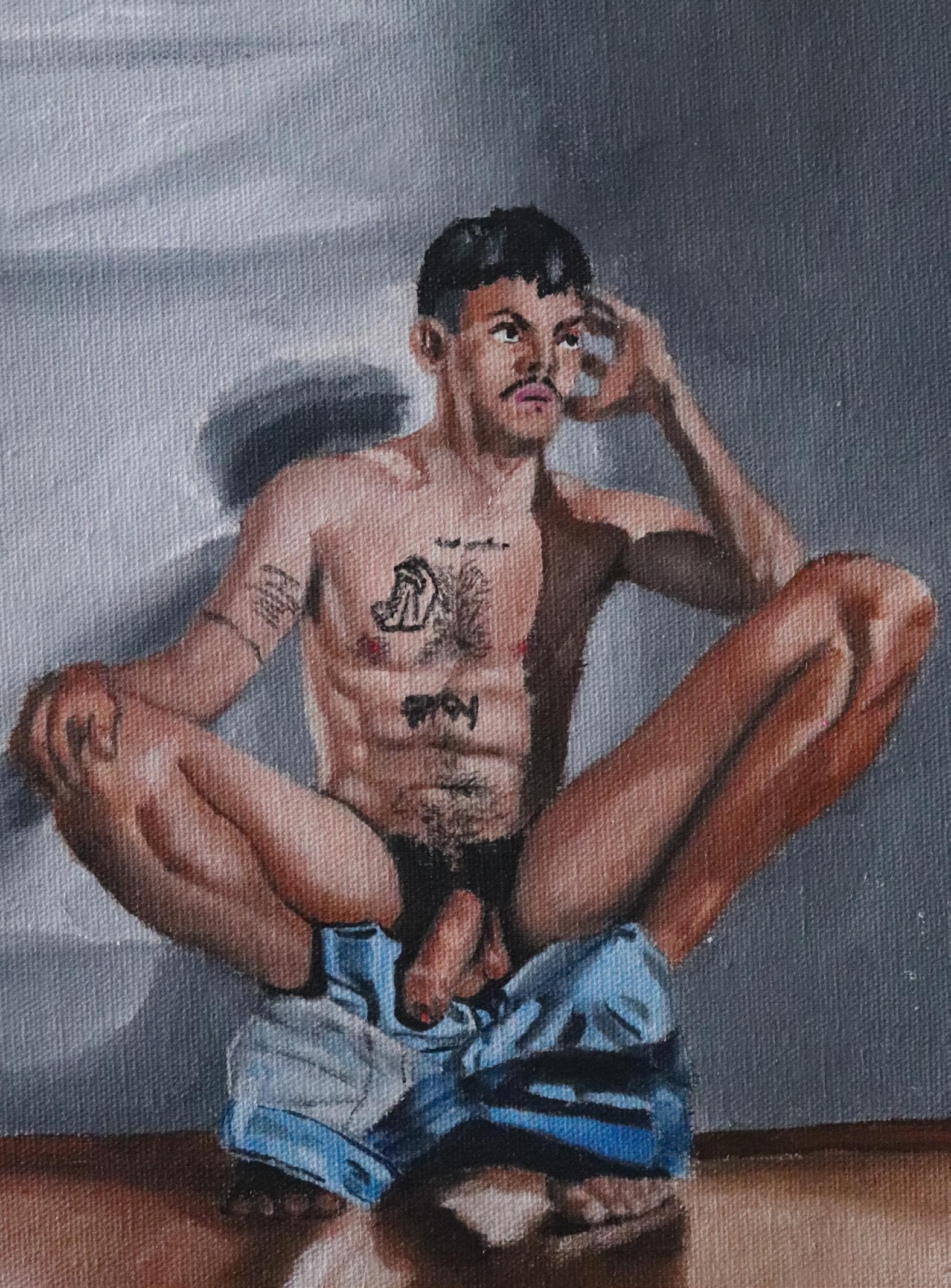 Apesar de estudar desenho de modelo vivo desde os 18 anos, o artista paulistano revela que o período universitário foi o responsável pela reviravolta em sua produção, porque, além de começar a pintar, conheceu a performance. Nesse momento, passou a entender a prática de modelo vivo não só como um meio de estudo de observação.