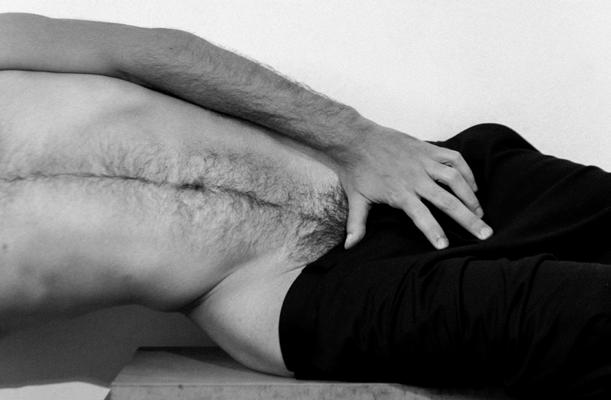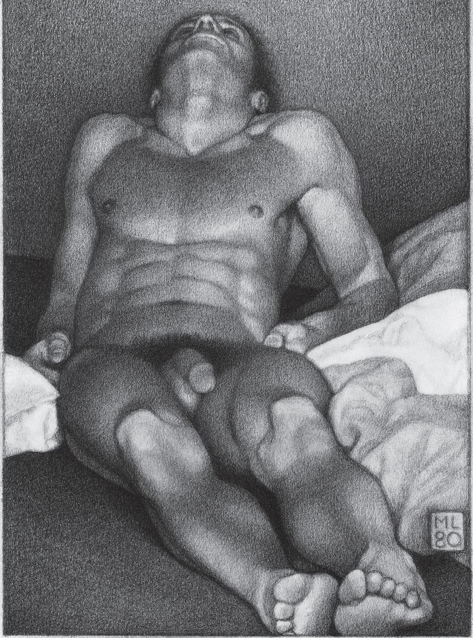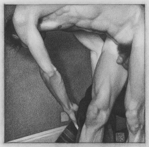 Homem deitado de costas, grafite em papel, 1980