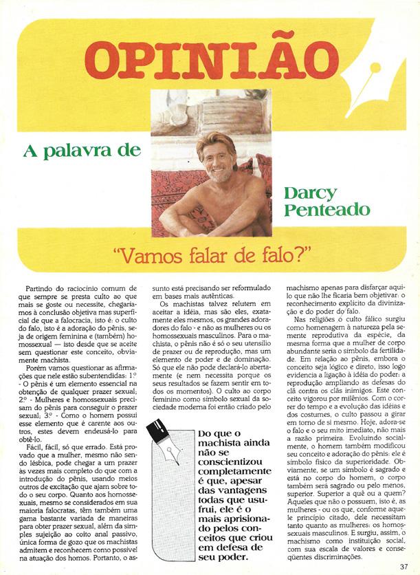 Esta coluna Especial, traz dois textos de Penteado: o primeiro é a Carta à Família Mesquita (1980), proprietária do jornal O Estado de S. Paulo, criticando duramente uma reportagem preconceituosa sobre a prostituição de travestis em São Paulo; e o segundo é Vamos falar de falo? (1982), que traz sua opinião sobre a construção do machismo falocêntrico que afeta tanto heterossexuais quanto os gays. Infelizmente ainda muito atuais.