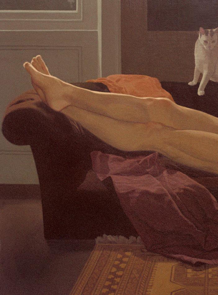 Shawn com gato branco, acrílica sobre Masonite, 1971.