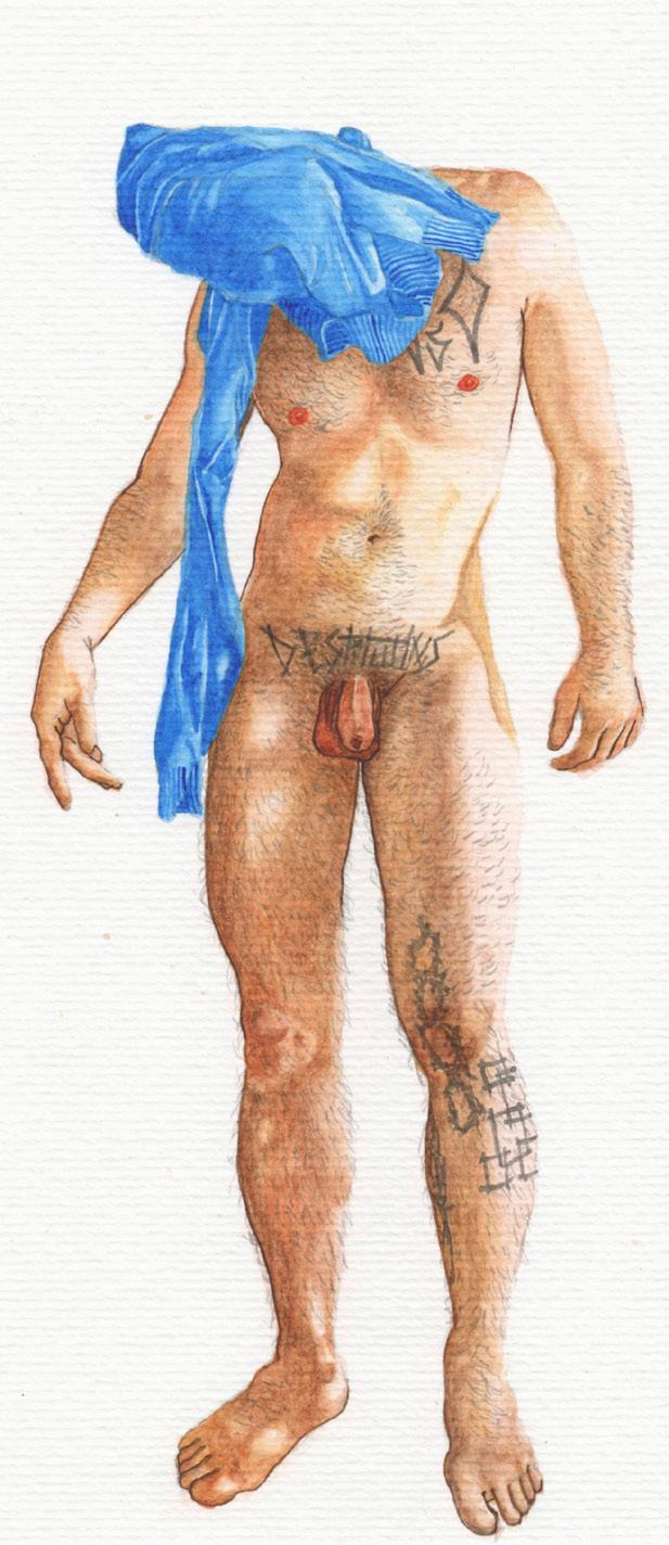 Movimento 1 (Tadzio) , da série Improviso Azul , grafite, nanquim e aquarela, 2023.