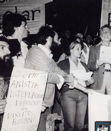 Primeira manifestação no Brasil contestando a violência contra a população LGBT, em São Paulo, onde Darcy Penteado lê uma carta aberta. (Acervo Darcy Penteado, Fundação Enrico Dell’Acqua)