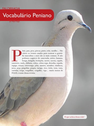 ênis, pau, pica, piroca, pinto, rola, caralho… São vários os termos usados para nomear a genitália masculina e esses são os mais comuns. E não podemos esquecer de: anaconda, aríete, banana, benga, bengala, berinjela, cacete, caceta, cajado, cassetete, caule, chibata, cobra, cobra-cega, drosoba, espada, espiga, estaca, estrovenga, jeba, mastro, membro, minhoca, neca, piça, pingolim, piupiu, tarugo, tico, ticão, tora, vara, varinha, verga, vergalhão, vergalho, viga… muito menos de FALO, o nome dessa revista.