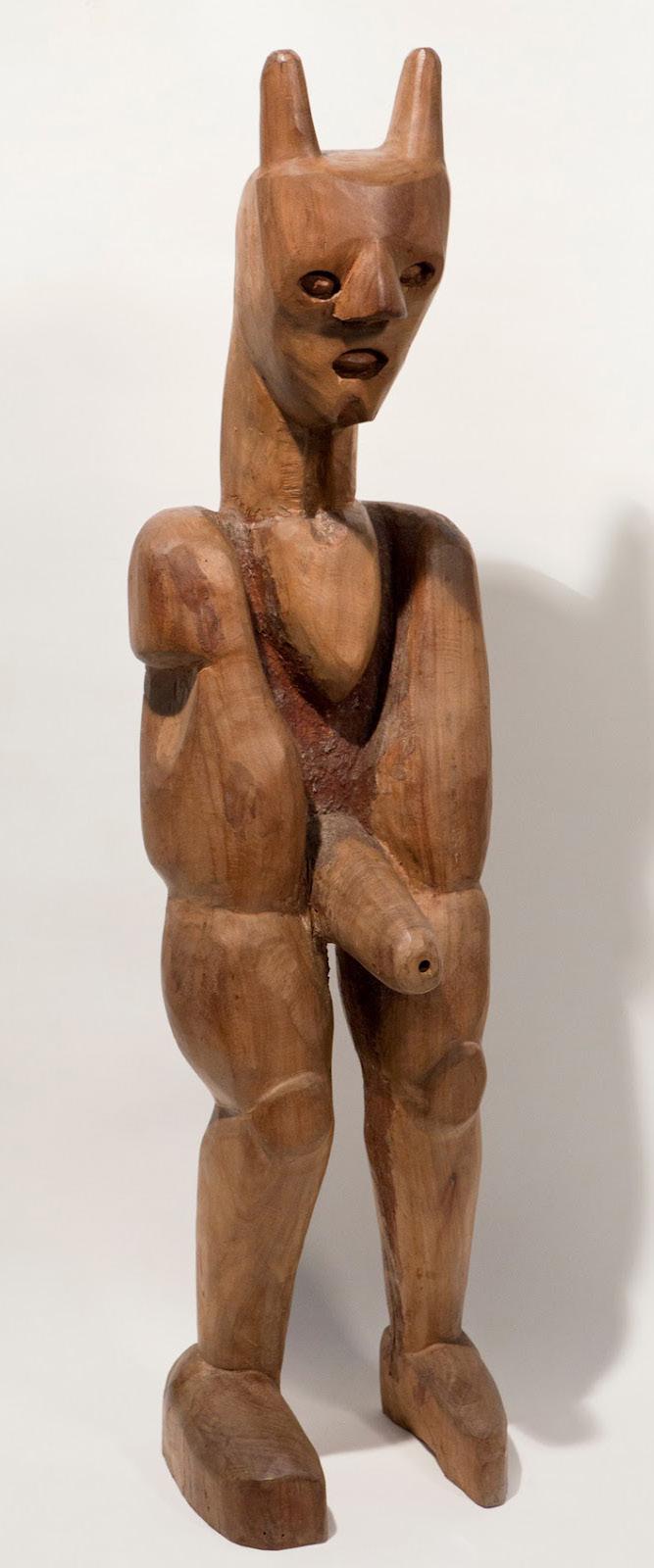 O artista não procurava reproduzir uma verdade anatômica ou ideal de beleza, mas pretendia materializar seu imaginário em esculturas que operam como abrigo de entidades religiosas. Com isso, aparecem estruturas híbridas como falos-vaginais e seiosescrotais, gerando deslocamento e autonomização dos membros do corpo, em um processo lúdico de desconstrução e reconstrução. Não se trata, no entanto, de uma perspectiva pornográfica, mas arquetípica, que opera com signos da memória ancestral, de ritos arcaicos à fertilidade e ao aspecto dualista do poder criador. Por meio de uma expressão plástica sintética e de base simbólica, Tabibuia desenvolveu sua linguagem sem tomar como referência a produção de outros artistas.