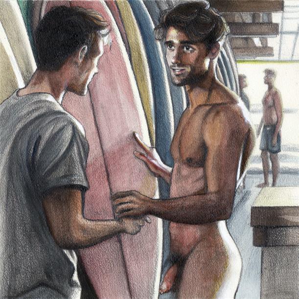 Milo Manara e Guido Crepax são bem conhecidos por seus trabalhos que frequentemente apresentam personagens femininas – geralmente nuas – em cenários comuns e surreais, até mesmo grotescos. A liberdade e a sensualidade retratadas por eles inspiraram o também italiano Francesco Brunetti a levar a mesma energia e expressividade para seus personagens masculinos em ilustrações a grafite e pinturas.