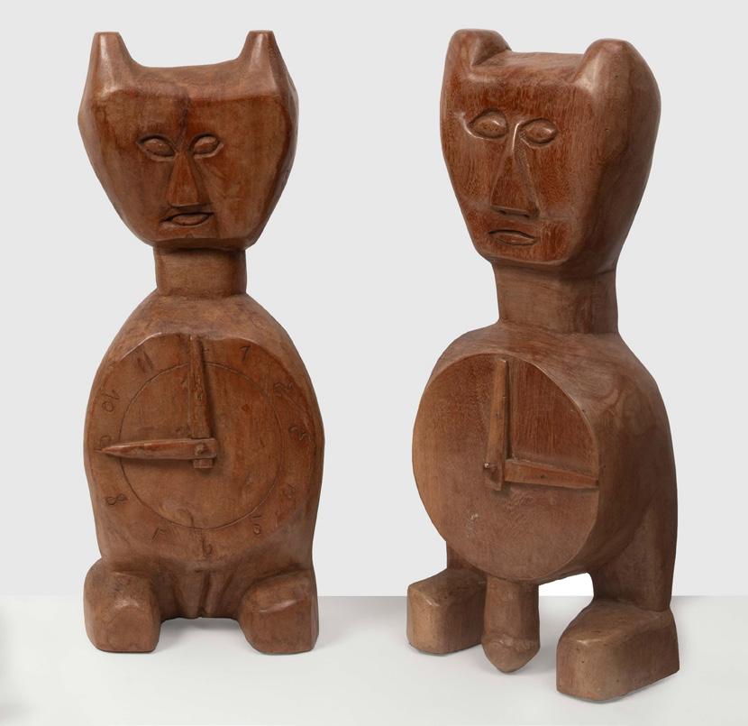 Acima, Relógio-Mulher e Relógio Homem, e, abaixo, Sem Título (Cadeira), ambos em madeira, s.d.