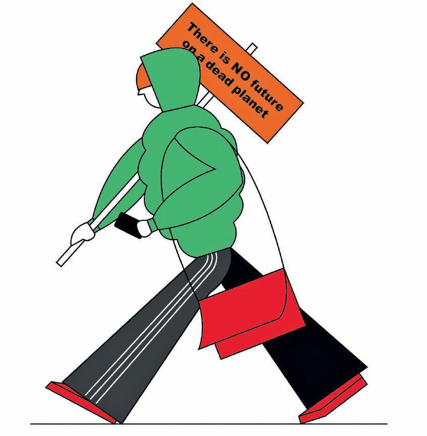 Auch Soraya Pechtl traut der Sache noch nicht so richtig und hat über dem Shirt eine lockere Strickweste an. FeuilletonRedakteur Ma hias Dusini hat seine dünne Bomberjacke bis ganz nach oben zugezippt. Barbara Tóth hat ein seidiges Übergangsmäntelchen, das sie nach dem Mittagessen im Büro liegenlässt. Modische mixed messages sendet Katharina Kropshofer aus: Die Kollegin aus dem Stadtleben kombiniert offene Sandalen mit einer Lederjacke. Sie schreibt in diesem He einen Kommentar über das Nicht-Erreichen des 1,5-Grad-Zieles. Ein Witz liegt in der Lu .