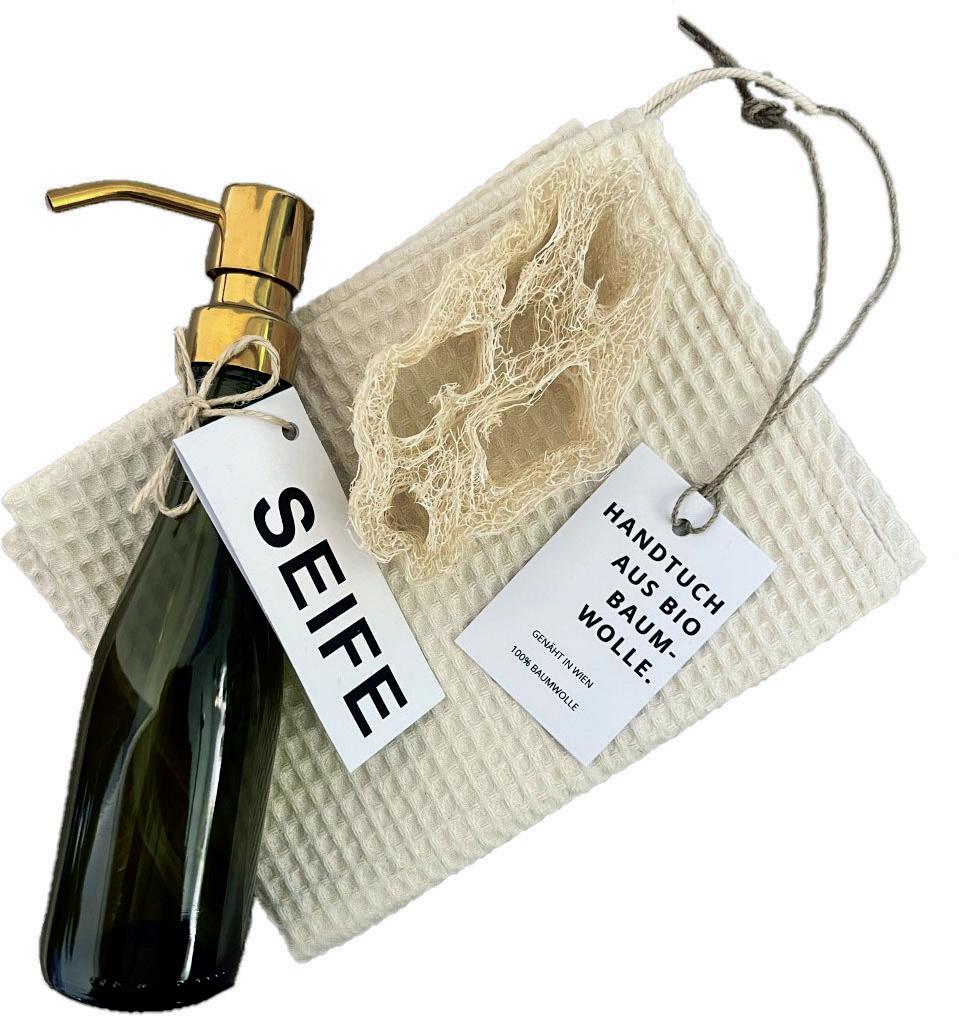 Ein heißes Bad macht die Welt meistens besser. Vor allem, wenn man sich danach in kuschelige Handtücher des österreichischen Fro ierprodukteherstellers HERKA wickeln kann: Das ZERO-WASTE-SET besteht aus drei Handtüchern (€ 59,70). Das Beste: sie werden aus Garnresten gewoben, die bei der Produktion anfallen – nichts wird weggeworfen.