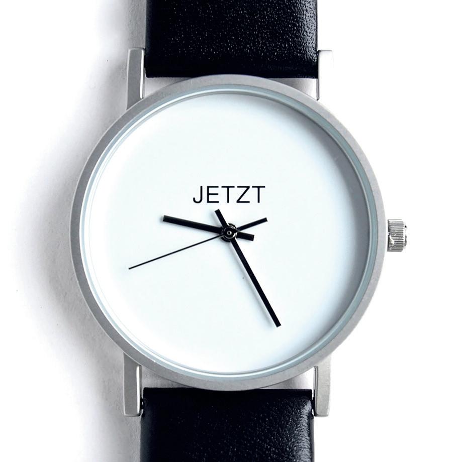 Für all jene, die einen kleinen Reminder brauchen, dass sich das Leben im Hier und Jetzt abspielt: die JETZT-Uhr aus dem Atelier des Kremser Künstlers Leo Zogmayer. Die Unisex-Armbanduhr mit Citizenwerk und schwarzem Lederarmband kostet € 95,–. Wir verlosen zwei Stück.